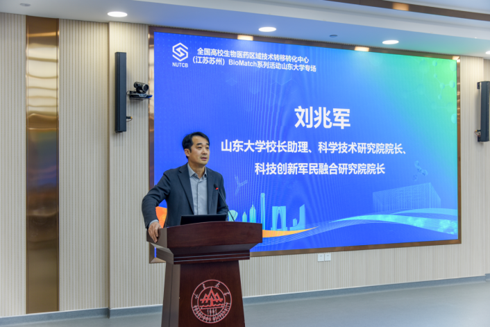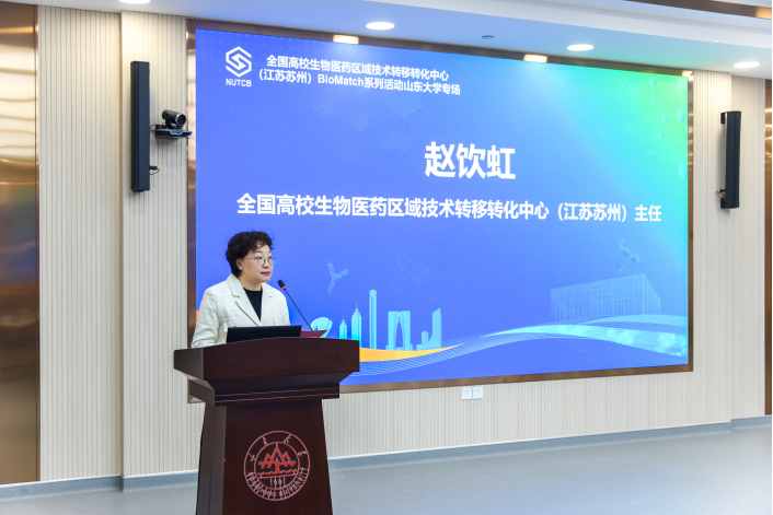 全国高校生物医药区域技术转移转化中心(江苏苏州)主任赵饮虹在致辞详细介绍了中心的定位、功能与优势,并表示山东大学在生物医药学科领域拥有深厚的科研积淀与人才储备,期待通过本场BioMatch路演活动,促成一批优质项目深入对接,开启中心与山东大学战略合作新篇章。