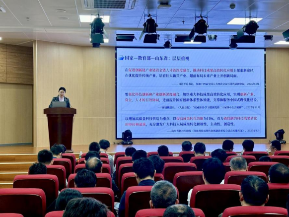刘兆军在致辞中介绍了近年来学校科技成果转化的创新做法及取得成效。他表示,国家高度重视科技创新与产业创新深度融合工作,科技成果转化是高校服务国家战略与地方发展的重要途径。希望学院师生以此次宣讲为契机,进一步增强转化意识,提升转化能力,让更多“科技之花”结出丰硕的“产业之果”,共同为建设世界一流大学的宏伟目标,为服务国家高水平科技自立自强,做出我们新的、更大贡献!