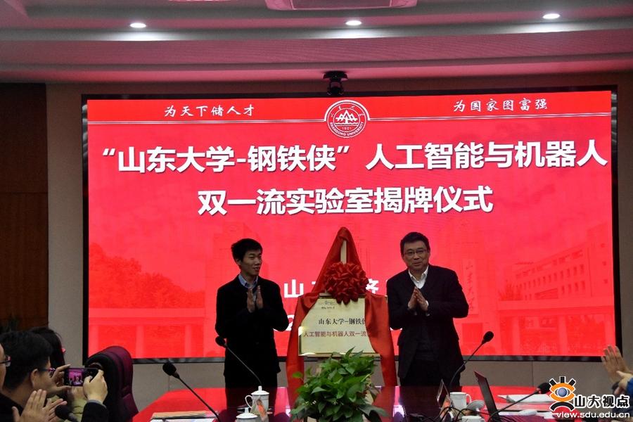 [本站讯]12月9日,山东大学控制学院与北京钢铁侠科技有限公司举行校企合作“山东大学-钢铁侠人工智能与机器人双一流实验室”揭牌仪式。山东大学副校长吴臻、北京钢铁侠科技有限公司CEO张锐出席会议。仪式由控制学院党委书记高瑞主持。